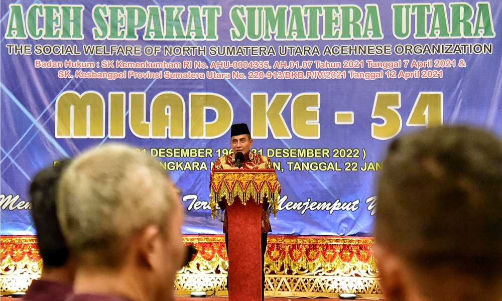 "Ada kurang lebih 500 ribu suku Aceh di Sumatera Utara dan sebagian besar berbisnis di sini, Saya harap Aceh Sepakat terus mendorong itu agar perekonomian kita meningkat tahun ini," kata Edy Rahmayadi, saat peringatan Milad ke-54 Aceh Sepakat di Balai Raya Aceh Sepakat, Jalan Mengkara Nomor 5, Medan, baru - baru ini.